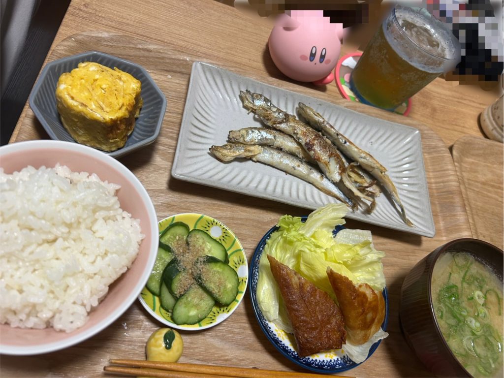 夜はししゃも焼いたのと