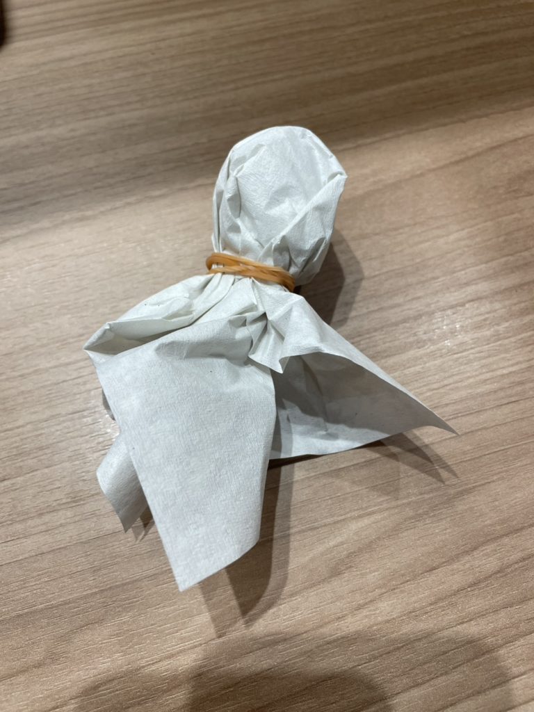 息子氏がてるてる坊主作って